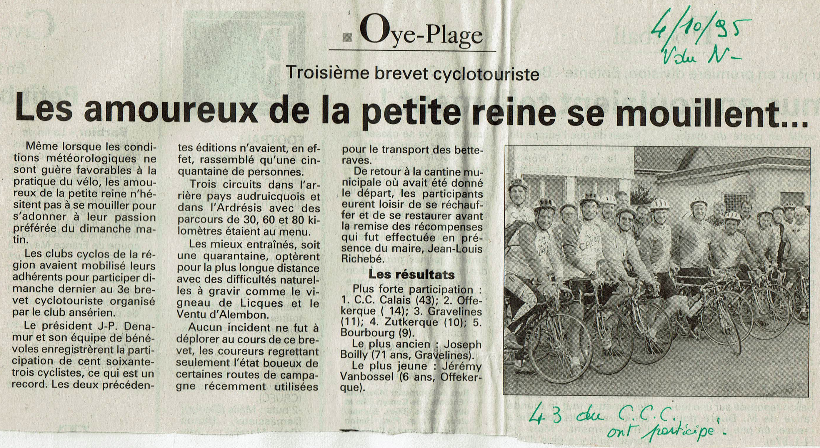 Un article du La Voix du Nord du 4/10/1995