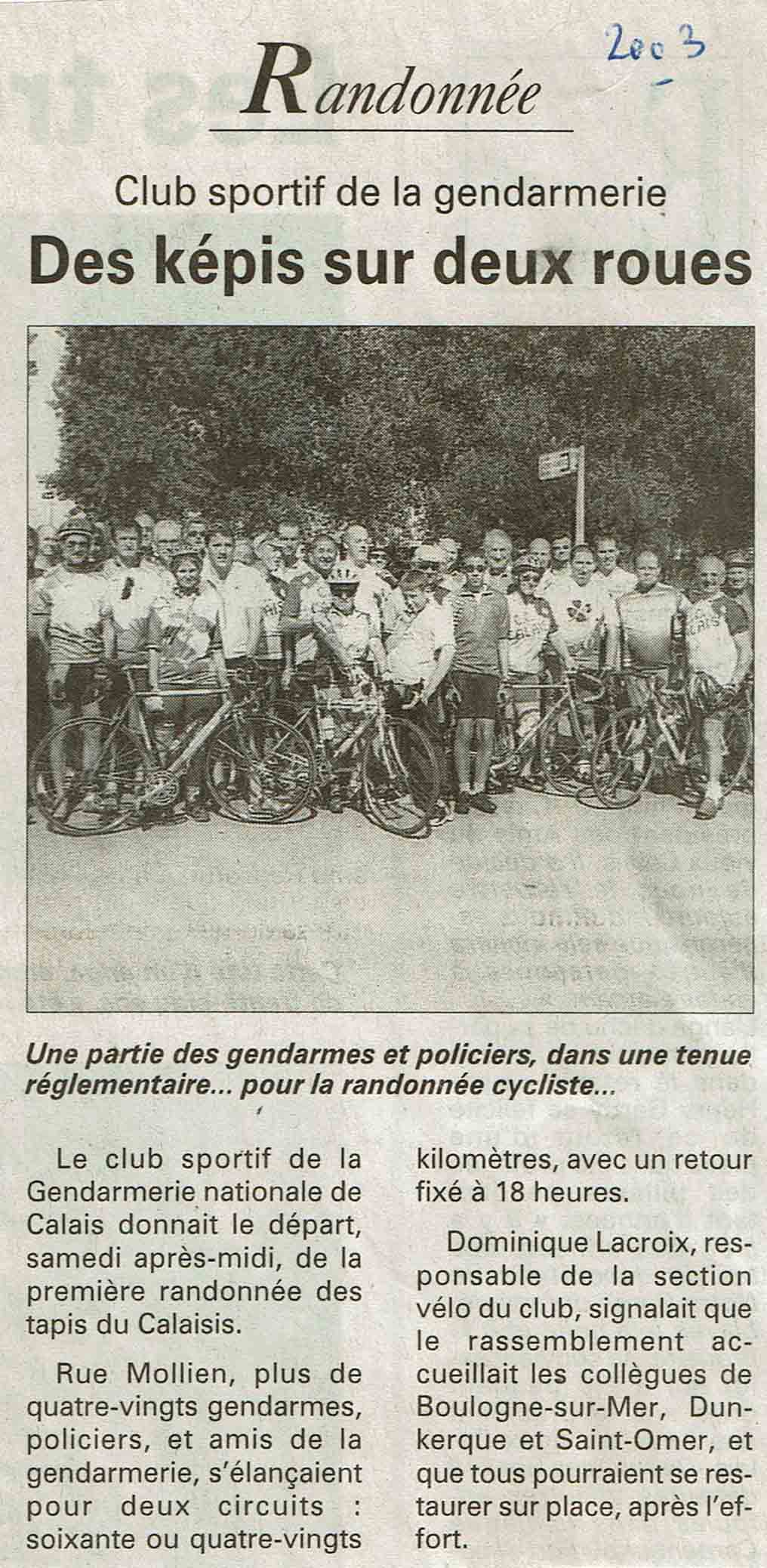 Un article du La Voix du Nord du 18/09/2003
